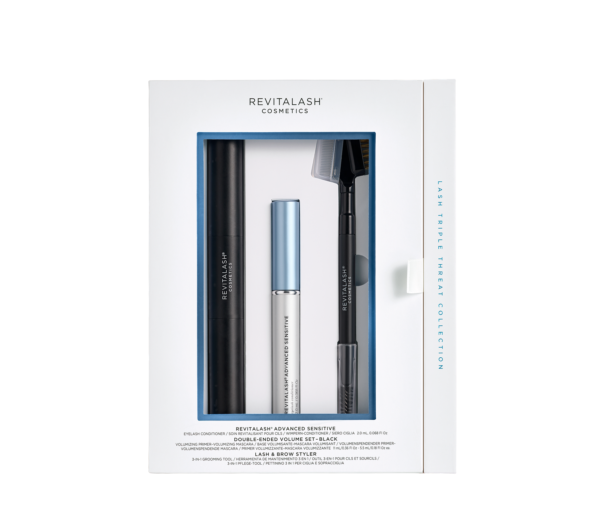 Our best lash-enhancing products—your most eye-catching look. This set features three essentials for beautiful, healthy, voluminous eyelashes. Choose either our best-selling RevitaLash® Advanced or our RevitaLash® Advanced Sensitive formula developed specifically for sensitive eyes.